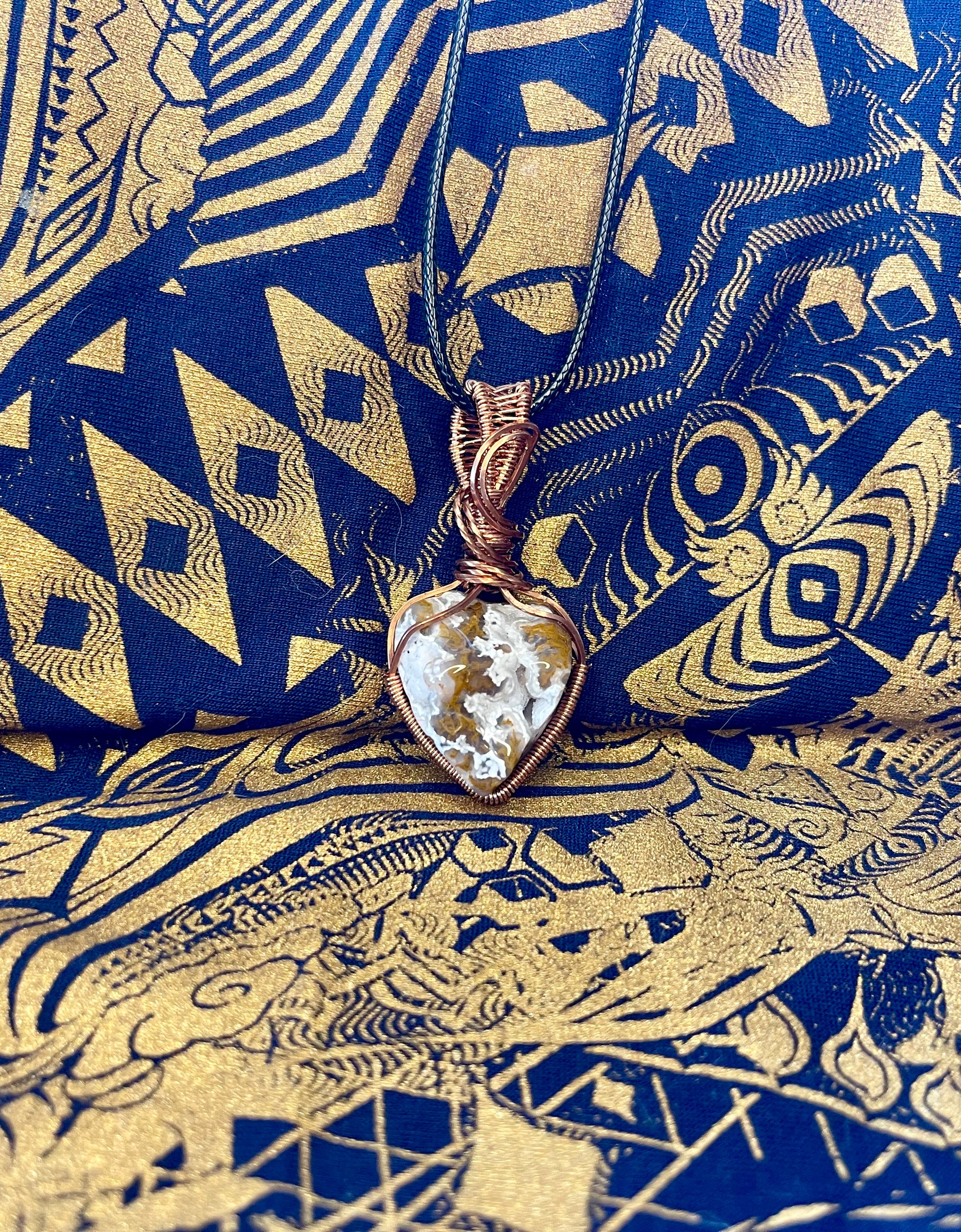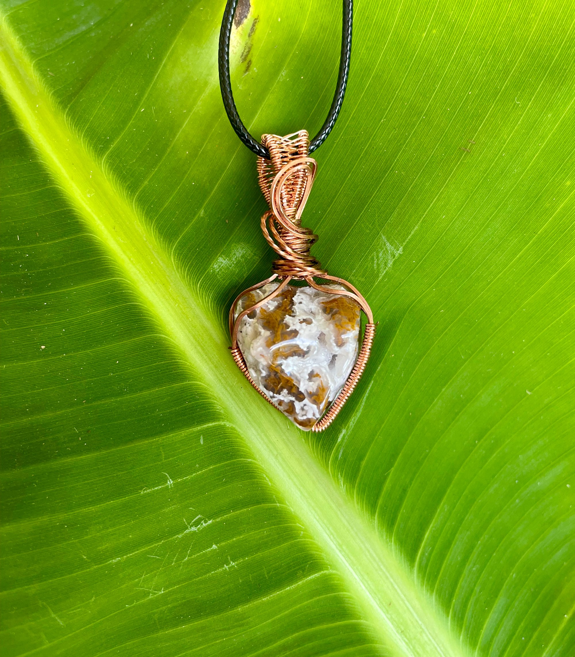 Handmade wire-wrapped Mexican Crazy Lace Agate pendant crafted with care and intention. Crazy Lace Agate is believed to bring joy, balance, and protection while promoting mental clarity and a positive outlook.